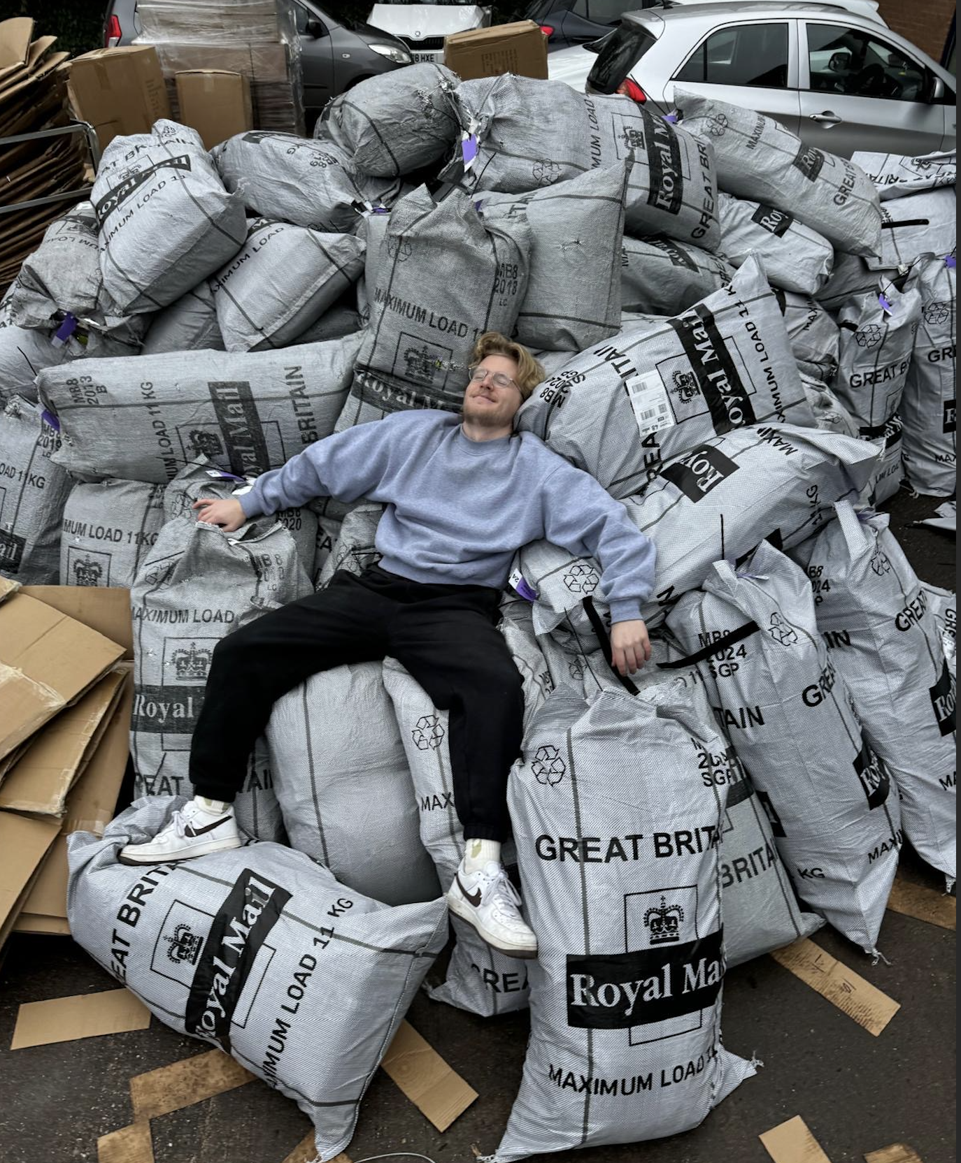 Or that Jack, our creative director, was slinging those very sacks onto a last minute luton we booked because Royal Mail couldn't even come to pick them up: