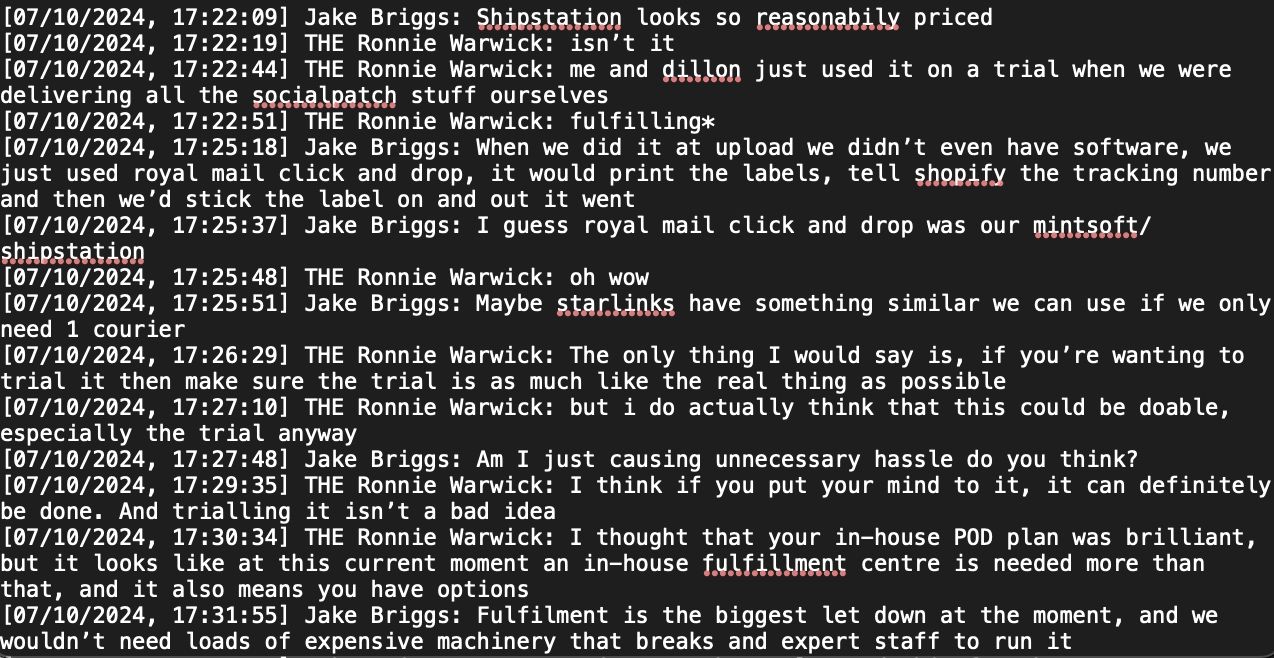 Here's a little view at the extremely naive Whatsapp conversation on October 7th 2024 where Ace Fulfilment was born, even if we didn't really believe it yet: